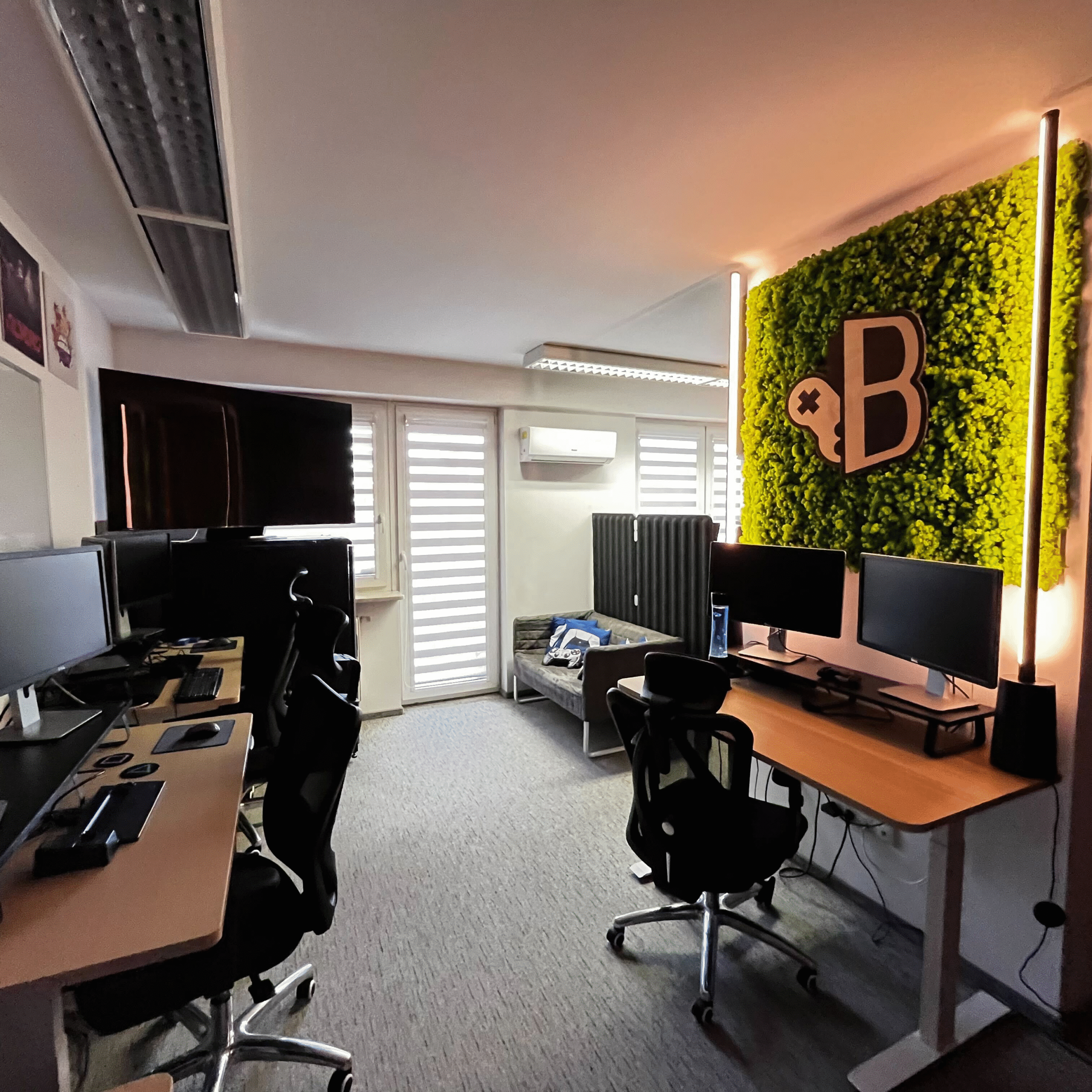 Our first studio, designed as a blueprint for future locations. The space was organized to support fast communication and promote healthy, ergonomic work. The network infrastructure was built with a focus on data security and the ability to support remote, hybrid work or fast relocation.